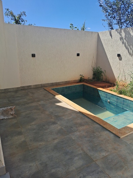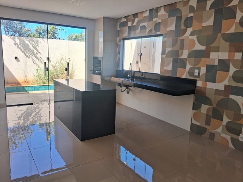 - TÉRREO: CASA COM PISO EM PORCELANATO, COMPOSTO POR 01 SALA DE VISITA, LAVABO, 01 COZINHA GRANDE COM BANCADA E PIA EM GRANITO, BALCÃO ILHA EM GRANITO, CHURRASQUEIRA EM ALVENARIA, JARDIM LATERAL, CANTEIRO NOS FUNDOS, PISCINA DE ALVENARIA, QUINTAL REVESTIDO EM PORCELANATO, GARAGEM COBERTA PARA 02 CARROS.CERCA ELETRICA, CONCERTINA, PORTÃO ELETRONICO, E CAMERAS.